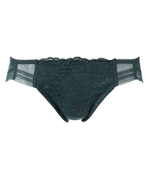 ・フロントは裏打ち付きで透けにくいフロントにあしらったリバーレースの美しさが際立つエレガントなショーツ。あさめのはきこみ丈ですっきりとした印象です。ウエストサイドのチュールピンタックが軽やかなアクセントに。繊細なディテールが光る洗練されたデザインです。