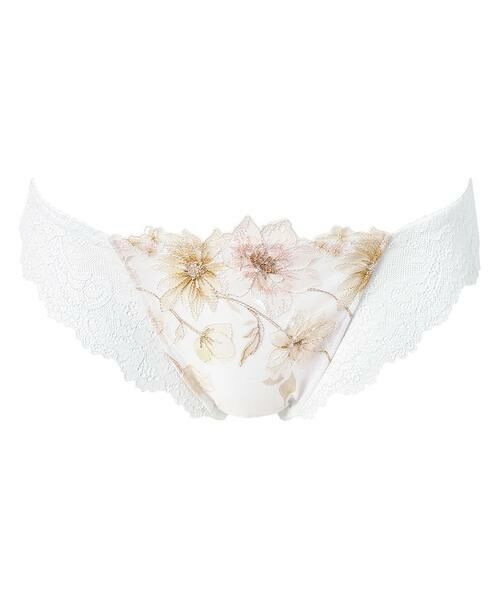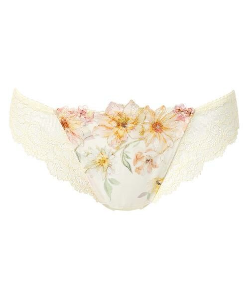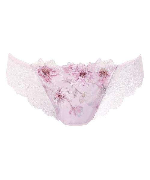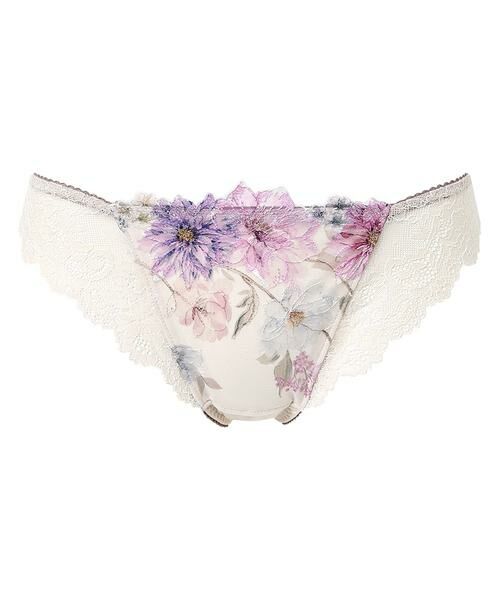 「ハグするブラ(BXB478)」「ハグするブラ コンパクトメイク(BXB378)」とペアコーデが楽しめるTバックショーツ。バックは総レースタイプでひびきにくく、華奢なフォルムでありながらヒップをほどよく覆う安心感のあるはきごこちが人気のデザインです。とろみのあるスカートやタイトなボトムもきれいに着こなせます。表情豊かな花々が咲くフラワーガーデンをイメージしたレースをフロントにあしらったスウィートなデザインです。