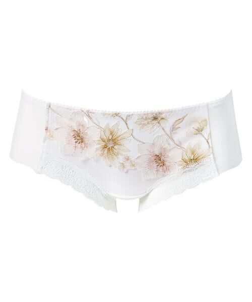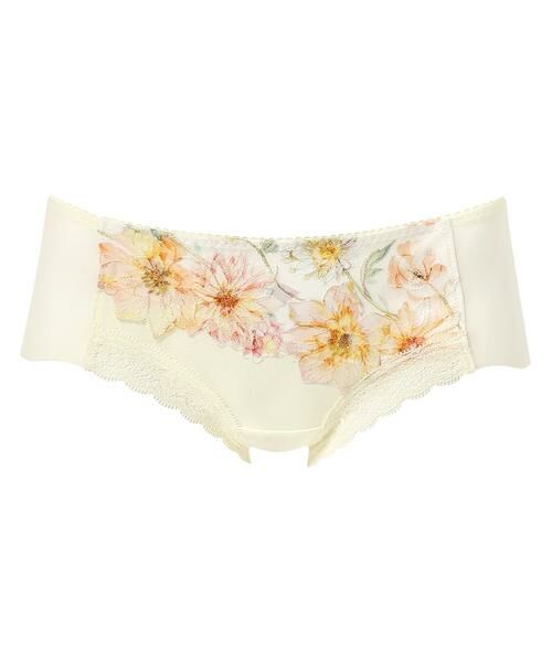 「ハグするブラ(BXB478)」「ハグするブラ コンパクトメイク(BXB378)」とペアコーデが楽しめるボーイレングスショーツ。表情豊かな花々が咲くフラワーガーデンを表現したレースをフロントにあしらったスウィートなデザインも魅力です。