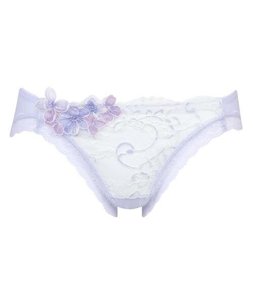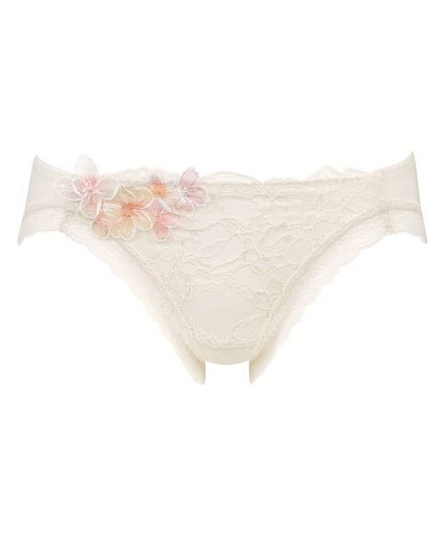 ・フロントは裏打ち付きで透けにくい・美しく、どこかはかないプリンセスをイメージした軽やかで繊細なレースと、着色テクニックを駆使したカラーのレイヤードがポイント
