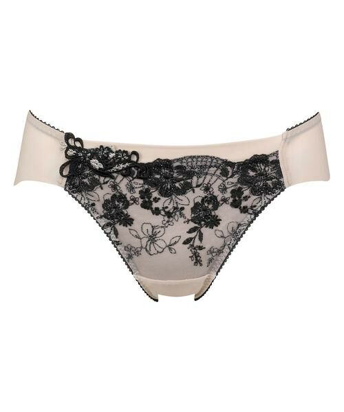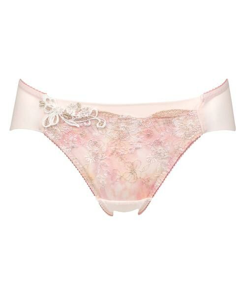 ●ラクなはきごこち 前ウエストは折り返し始末でくいこみにくく、圧迫感を軽減 後ろウエストと前裾は伸びのよいストレッチテープを使用・フロントは裏打付きで透けにくい・フロントのレースは12時を指す時計の文字盤をイメージ