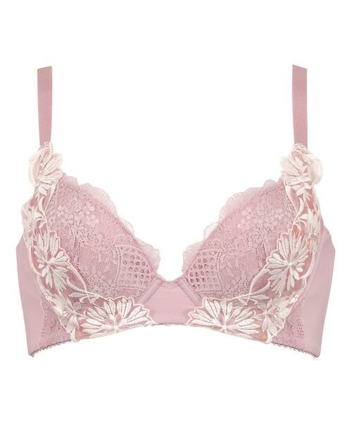 ●脇から背中のラインをすっきり バック下辺の位置を下げることでブラをつけたときに気になる、脇から背中の段差をおさえ、なめらかに●バック上辺はアウターにひびきにくい バック上辺は折り返し始末で、肌にくいこみにくい●カップ脇上辺とアンダー部分はやさしい肌ざわり カップ脇上辺とアンダー部分は、伸びのよい肌側綿混ストレッチテープを使用・カップ上のエンブロイダリーレースは、カラーによってプリント柄を変えたこだわりのデザイン<(E〜G)カップ>パッドを取りはずした状態でのボリューム設定