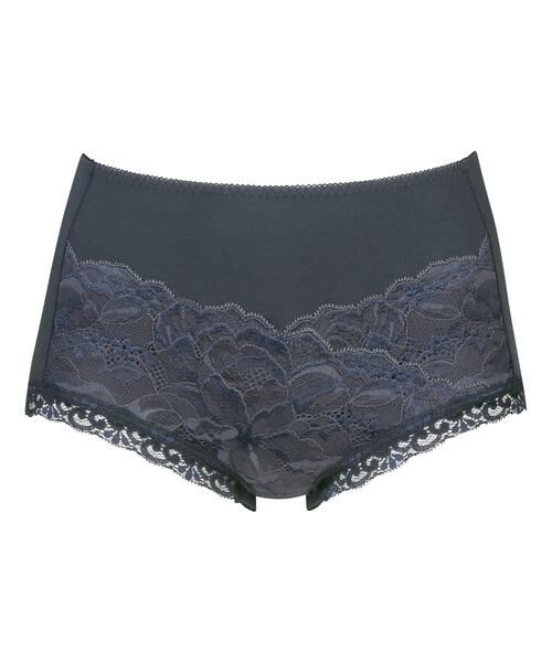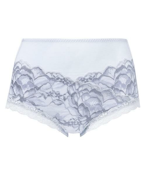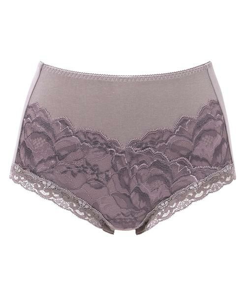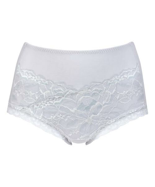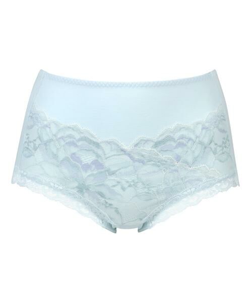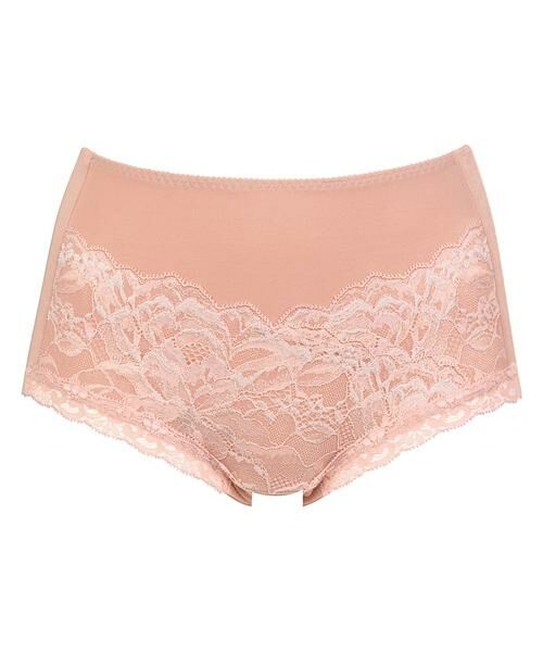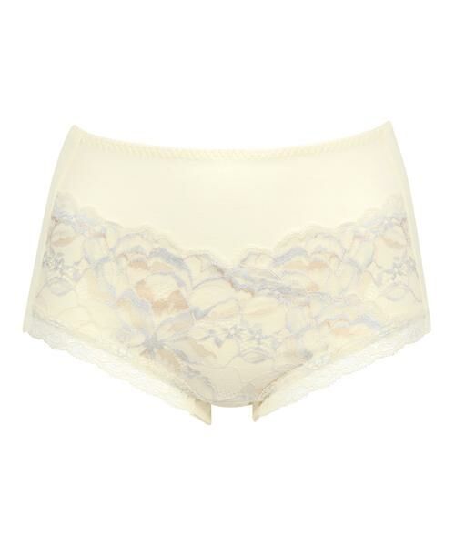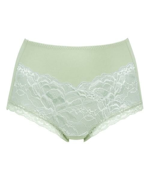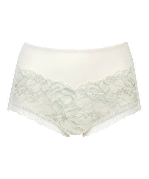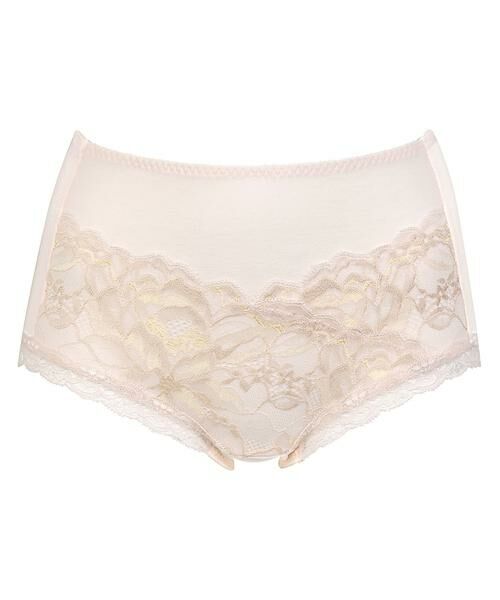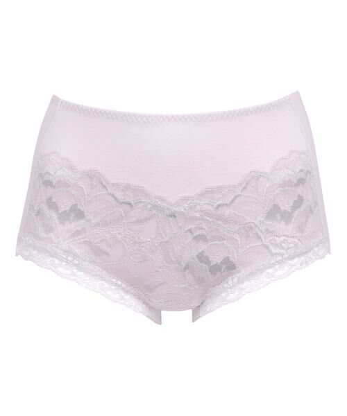 ●やさしい肌ざわり 伸びのよい綿混ベア天竺素材がヒップをすっぽり包みこんで、ここちよくフィット●ここちよくフィット ウエストは伸びのよいストレッチテープを使用・フロントのレースの配置は左右対称の2タイプあり
