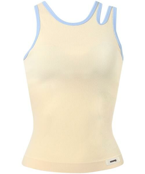 アシンメトリーなデザインが、ヘルシーな肌見せを叶えてくれるブラトップ。一枚で着こなしに差がつき、重宝するマストアイテムです。カップ付きなので1枚での着こなしや、レイヤードスタイルにも便利なアイテムです。パイピングの配色は、〈cooomy.〉を象徴するカラーパレットを詰め込んだこだわりのカラーリング。