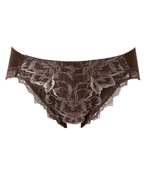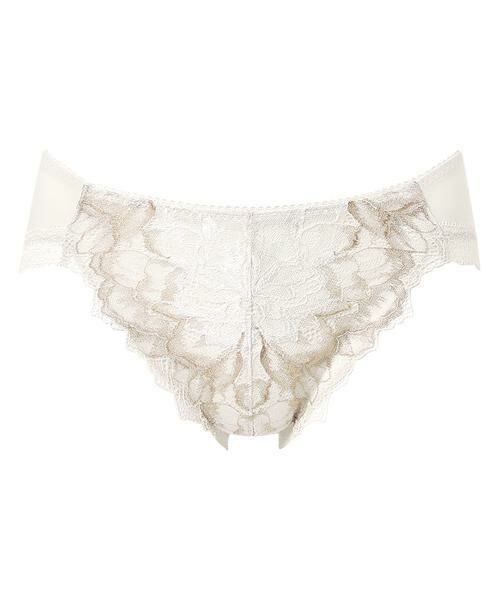 ●はきごこちがよい バックはやわらかく伸びるナイロンベア天竺素材で、はきごこちがよい〈LL・3Lサイズ〉前裾にゴムを追加し、裾の安定感をプラス「ハグするブラ(BXB418)」「ハグするブラ コンパクトメイク(BXB318)」とペアコーデが楽しめるショーツ。あさめのはきこみ丈ですっきりとした印象です。フロント部分には陰影が美しい繊細なレースをあしらい、ラグジュアリーな雰囲気に。脚まわりのレースデザインがエレガントさを引き立てます。