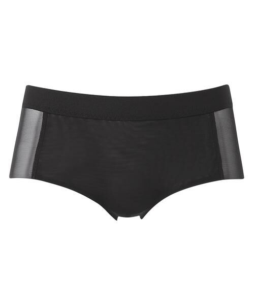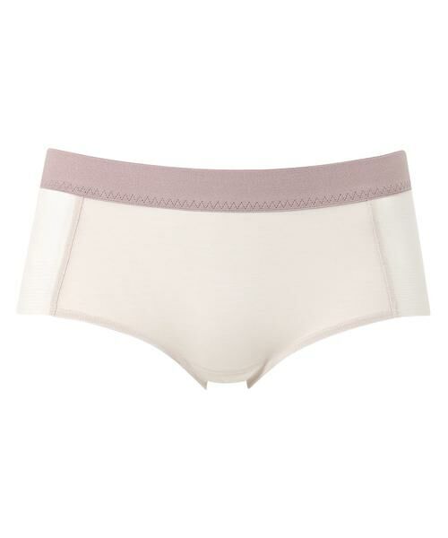 「重力ケアブラ ノンワイヤー(BXB114)」とペアコーデが楽しめるボーイレングスショーツ。本体は軽やかな素材でラクなはきごこち。裾をヘム仕様にすることで、アウターにひびきにくくボトムもきれいに着こなせます。シンプルなデザインで、単品としても使いやすいアイテムです。