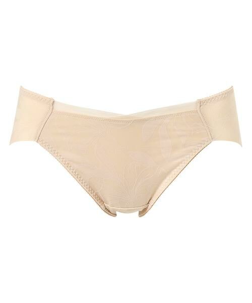 ●後裾はアウターにひびきにくい 後ろ裾はフリーカッティング素材でくいこみにくい優美なユリ柄モチーフをあしらった、スムースジャカード生地のシンプルなデザインが上品。フロントのカッティングとチュールがラグジュアリーで洗練された印象を与えます。はきこみ丈はあさめでおなか部分がもたつきにくくすっきり。後ろ裾はひびきにくいフリーカッティング素材で、タイトなボトムやとろみのあるスカートとのコーディネイトにもおすすめです。