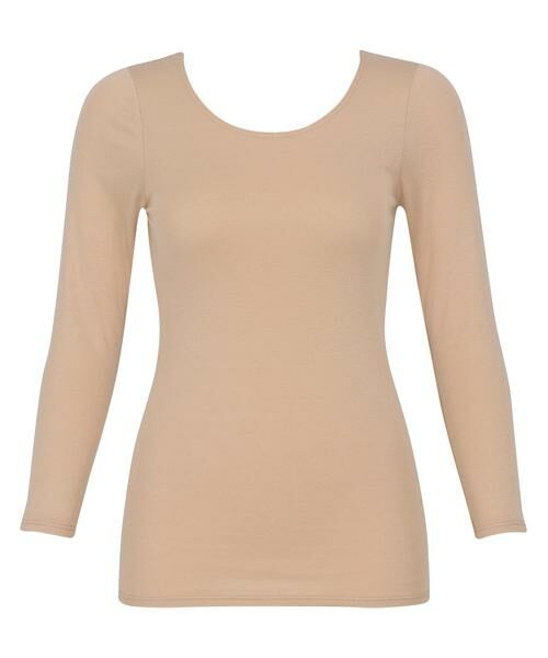 ふんわりとしたやわらかな風合いと、包みこんでくれるようなあたたかさが魅力のインナー。腕をあたたかく包みこむ8分袖で、袖口からは見えにくい絶妙な丈感。ネック浅めで、デコルテ部分も広範囲にカバーします。すっきりと着こなせるため、重ね着コーディネイトのインナーとしても便利。着ぶくれしたくないけどあたたかく過ごしたいという方におすすめです。吸放湿性があるので意外と気になる冬のムレ対策にも。