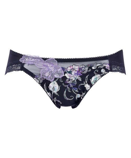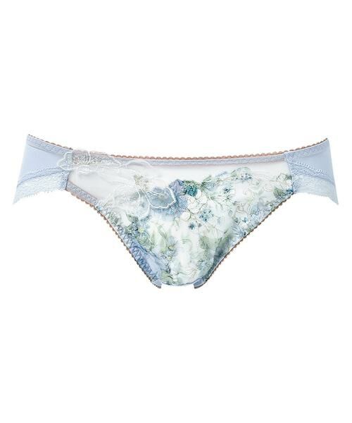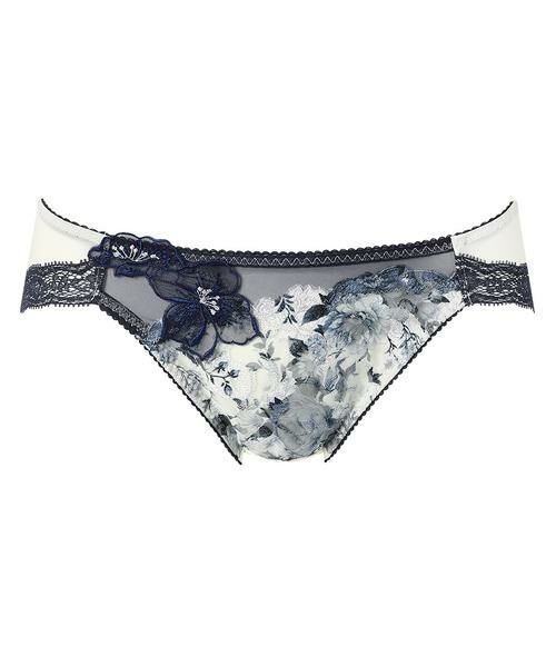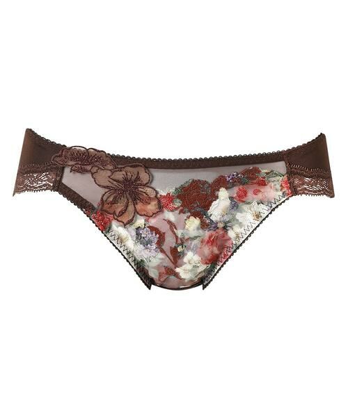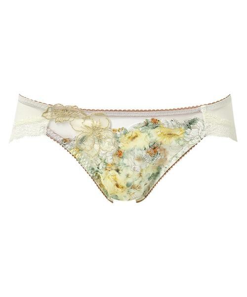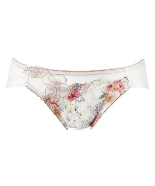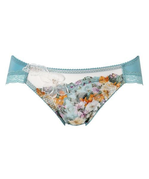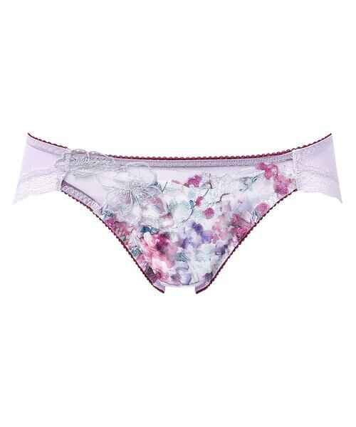 ●はきごこちがよいバックはやわらかく伸びるナイロンベア天竺素材で、はきごこちがよい「リボンブラ 胸もとフィットながもち (BXB490)」とペアコーデが楽しめるショーツ。あさめのはきこみ丈で、すっきりとした印象。ラナンキュラスの花を描いたアップリケが晴れやかな魅力を放つデザインです。
