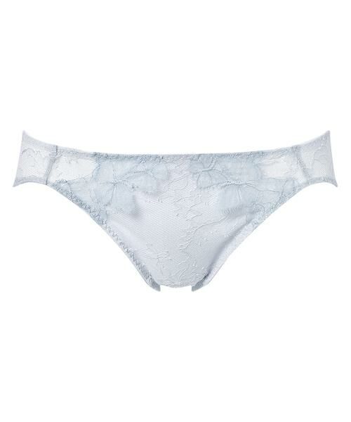 バックには透け感があるやわらかな素材を使用・フロントは裏打付きで透けにくい優美なリバーレースの花々に可憐な蝶々のモチーフが舞う、繊細で軽やかなデザインのショーツ。あさめのはきこみ丈ですっきりとした印象に。総レース仕立てならではの上品な透け感が美しい華奢なデザインに仕上げました。シンプルなカラーリングにすることで、モダンで洗練された雰囲気を演出。ラグジュアリーさと気品を感じる一枚です。