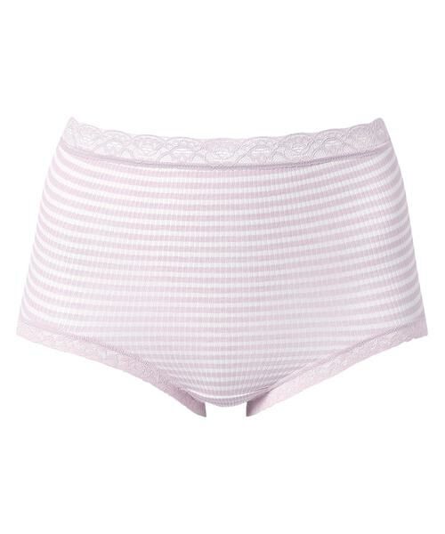 さわやかな素材と安心感のあるはきごこちの定番ショーツ。はきこみ丈ふかめですっぽりとウエストまで包みこみます。脇接ぎがなく、ストッキングやガードルを重ねても縫い目があたりにくい仕様。汗をかいても乾きやすく、さらっとした着用感が魅力です。ポップなボーダー柄とカジュアルなカラーリングが気分を明るくするキュートなデザイン。大切な方へのプレゼントにもおすすめです。