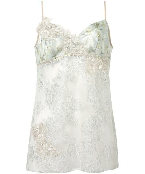 ・本体身生地とアップリケにはラメ糸を使用「リボンブラ 脇すっきり(BXB473)」とペアコーデが楽しめるキャミソール。ラメ糸がキラキラと光るラッセルレースを身生地にふんだんに使用しました。バックリボンが華奢でセクシーな印象に。パイピングを効かせたインポートライクなデザインと薔薇を咲かせたシアーなアップリケがエレガント。シーズンを通して着用できるキャミソールを気分次第で。