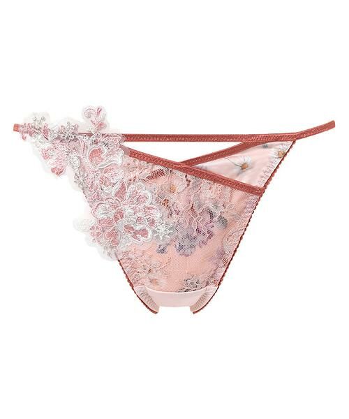 「リボンブラ脇すっきり(BXB473)」とペアコーデが楽しめるTバックショーツ。バックは総レースタイプでひびきにくい仕様。華奢なフォルムでありながらヒップをほどよく覆う安心感のあるはきごこちが人気のデザインです。サイドのストリングがセクシーな印象に。シンプルな無地から華やかな花柄まで気分に合わせて選べます。キラキラと光るラッセルレースにパイピングを効かせたインポートライクなデザイン。薔薇を咲かせたシアーなアップリケが優美な一枚です。