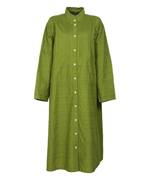 ランダムなピンタックが全体に映える、リッチなワンピース。胸元のラウンドした切り替えでピンタックの縦と横がスイッチするデザインです。柄のように美しく並ぶピンタックが主役の、着た時のきれいなシルエットにこだわった1枚。