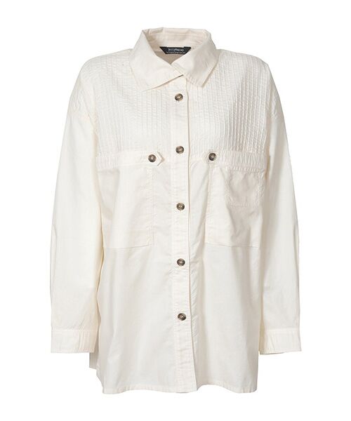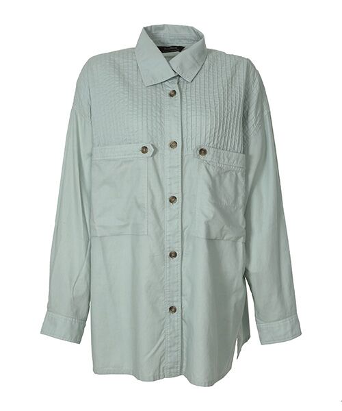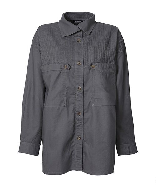 ソフトで肌触りの良いツイル素材にピンタック×とメンズライクなポケットをオン。 オーバーサイズで気負わず羽織れるカジュアルシャツです。 落ち感がある素材のため、襟を開けると柔らかく肩にのり、前のボタンをあけるとサラッと軽さが出てリラックスムードを演出。