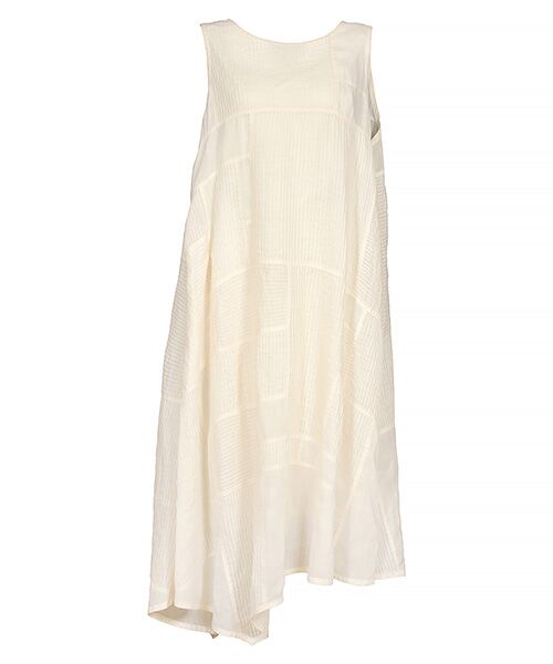 ラミーボイルの透け感とピンタックのコントラストがアシンメトリーのドレスをより華やかにして、一枚で堂々の主役を張る1枚。