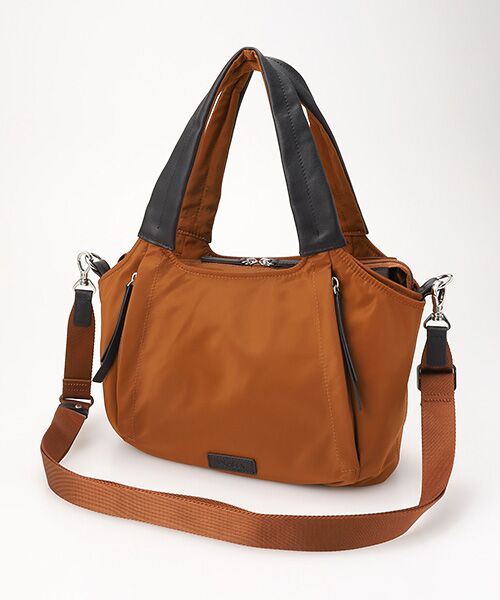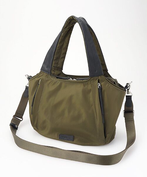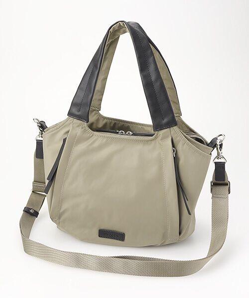 すっきりとしたシルエットにタックを寄せほど良くフェミニンに仕上げた2WAYトート。