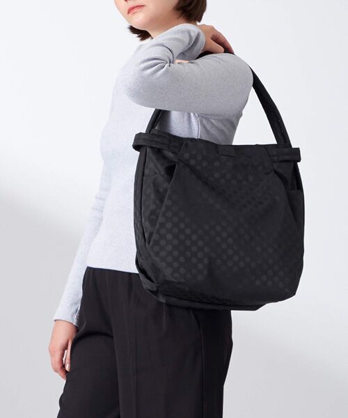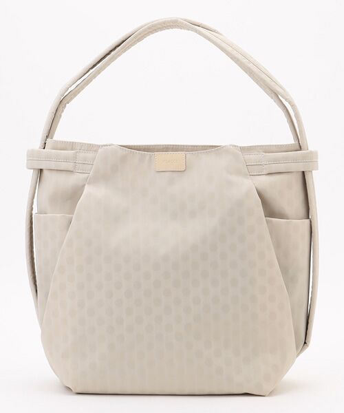 メイン素材には、撥水加工を施したドット柄ジャカード素材を使用しており、見る角度や光の加減で柄の見え方が変わるためさりげなく柄を取り入れられます。