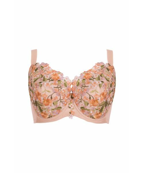 ●豊かなバストボリュームを安定させる 下カップのボーンでバストを下からささえ、カップをきれいに造形する豊かなバストボリュームの方におすすめのフルカップ バックはパワーネットが二重仕立てで、安定感のあるつけごこち・バック上辺は折り返し始末で背中の段差を軽減し、アウターにひびきにくい・縫い目が表に出ない仕様の肌ざわりがソフトなホックを使用