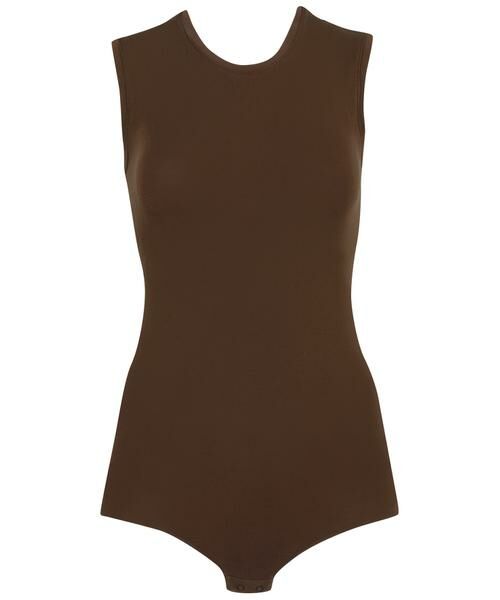 トップスインのコーディネイトを美しく着こなせる、アウターとして使えるボディスーツ。裾がウエストから出てこないので、すっきりと、着くずれなく着こなせる