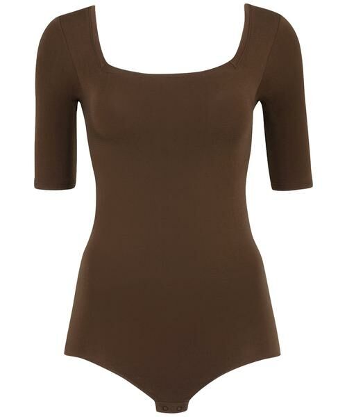トップスインのコーディネイトを美しく着こなせる、アウターとして使えるボディスーツ。裾がウエストから出てこないので、すっきりと、着くずれなく着こなせる
