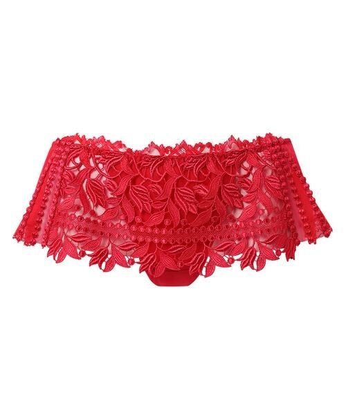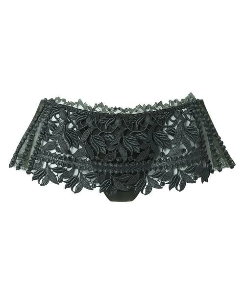 繊細なモチーフが素肌に浮き立つ、ラグジュアリーなフレアーショーツ。整然としたステッチを効果的に使い、刺繡糸の光沢を生かしてパールの輝きを表現。伸びやかな植物モチーフを上品なきらめきで華やかに彩りました。美しい透け感があり、スカートのようにひらりとしたシルエットは儚く可憐な印象に。シンプルなカラーリングと調和するゴージャスなデザインに心が躍る、ホリデーシーズンにぴったりの一枚です。