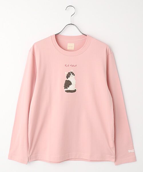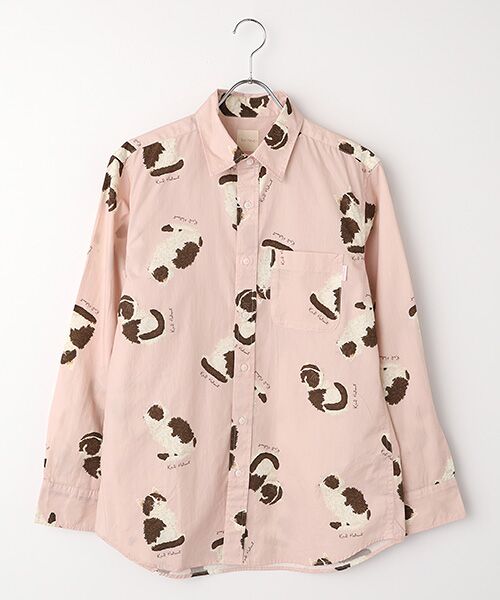 モフモフ猫が全体にプリントされたシャツブラウス。