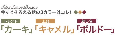 「カーキ」「キャメル」「ボルドー」の3カラーでキマリ!