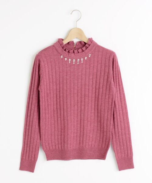 ビジューリブ編みプルオーバー