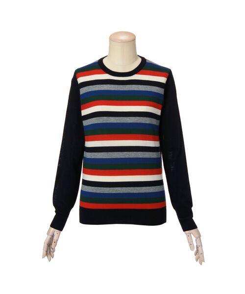 マルチカラーのボーダーニットプルオーバー。