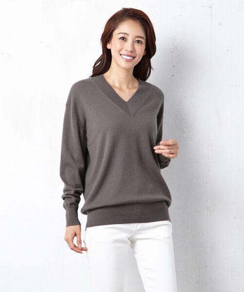 上質なカシミヤ100%が心地よいVネックニット。