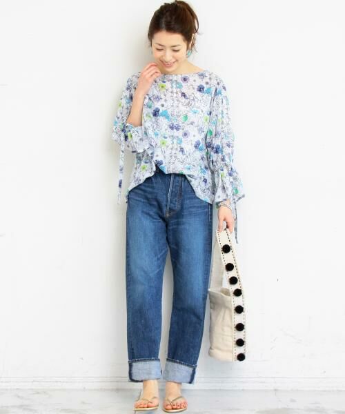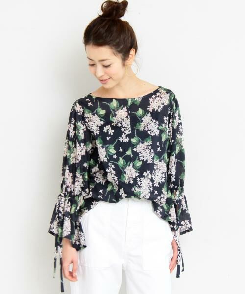 ■【予約】BY リバティプリント リボンスリーブブラウス -2WAY-2色展開(WHITE / NAVY)¥14,040(税込)