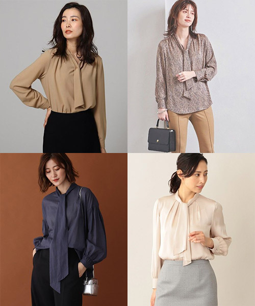 使えるシーズンが長いボウタイブラウス。