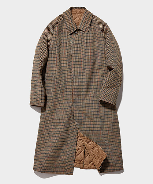 ポリエステルツイードとキルティング、リバーシブルで楽しめるステンカラーコート。