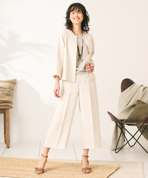 ナチュラルなカラーリングで同素材のワンピースやパンツも展開。
