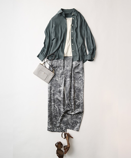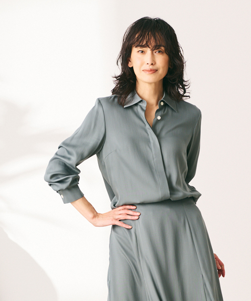 シルクのようなサテン生地で思わず袖を通したくなるブラウス。