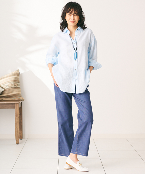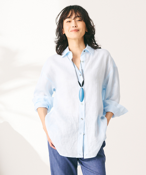 ウォッシュ加工を施した上質なリネンのブラウスは、