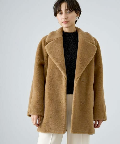 ウールとリサイクルポリエステルをそれぞれの良さをバランスよくブレンドしたサスティナブル素材。軽くて暖かい、ゆったりとしたボックスシルエットが魅力のシャギーコート。羽織り感覚でリラックスして着用できる。