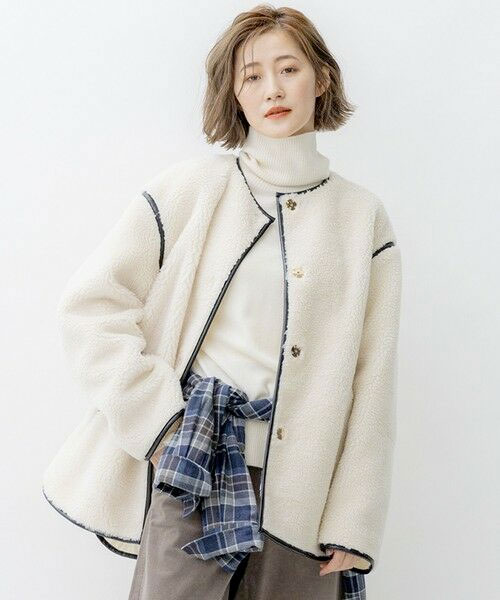 毛足の70%がペットボトルをリサイクルして作られた、エコなポリエステルを使用した地球に優しい素材。1枚は持っておきたい、大人カジュアル派の新定番ボアブルゾン。