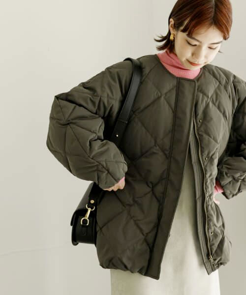 リサイクル素材「Green Down」を使用した万能アウター。肩の落ちるラグランスリーブや丸みのあるコクーンシルエットが女性らしい抜け感を演出し、後ろ下がりをつけた着丈が気になる腰周りもカバー。