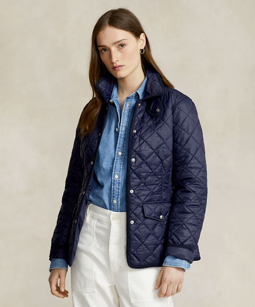 リサイクルナイロンで作られたキルティングジャケット。暖かさを保つようにデザインされた断熱構造が特徴。シグネチャーのポニー刺繍がさりげないポイント。