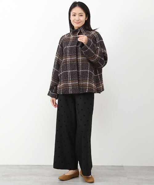 暖かみのあるウール混ボア素材のノーカラーコート。