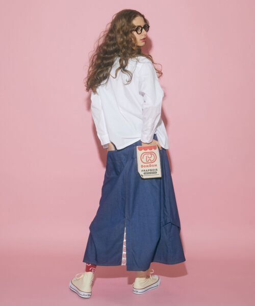 胸元に小さなポケットがあり、そこに「どむぞうくん」がのぞいているシュールさがブランドらしい