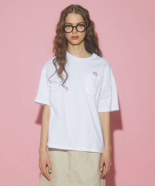 シンプルなホワイトのポケT。しっかりとした生地感とゆったりした着心地で、どんなアイテムとも相性バツグン◎