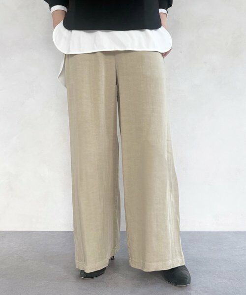 脚のラインを拾わないたっぷりワイドなデザインながら、