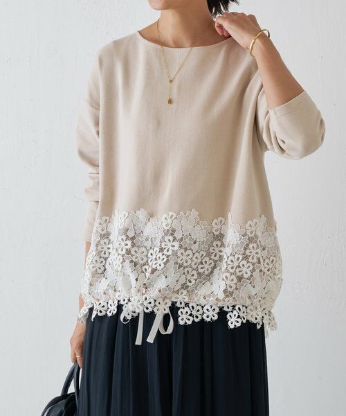 裾レースコットンカットソー