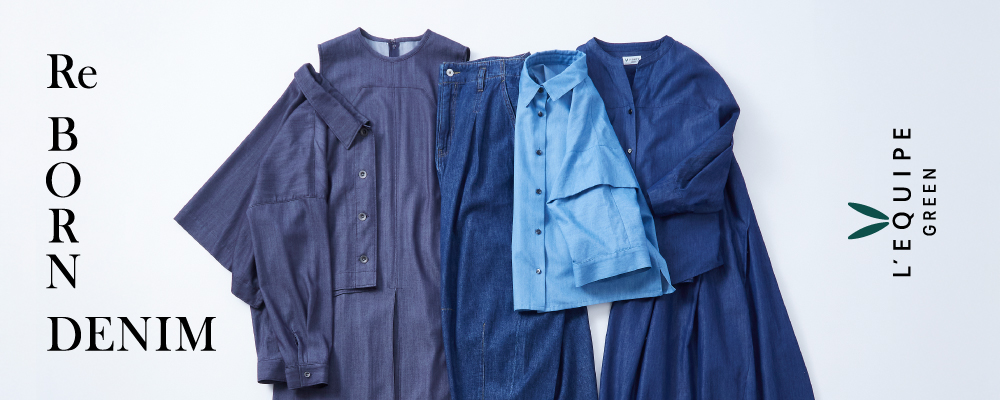 植物由来の再生繊維を使用した ”デニム” をメインに提案するコレクション。