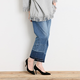 裾フリンジストレートデニムパンツ