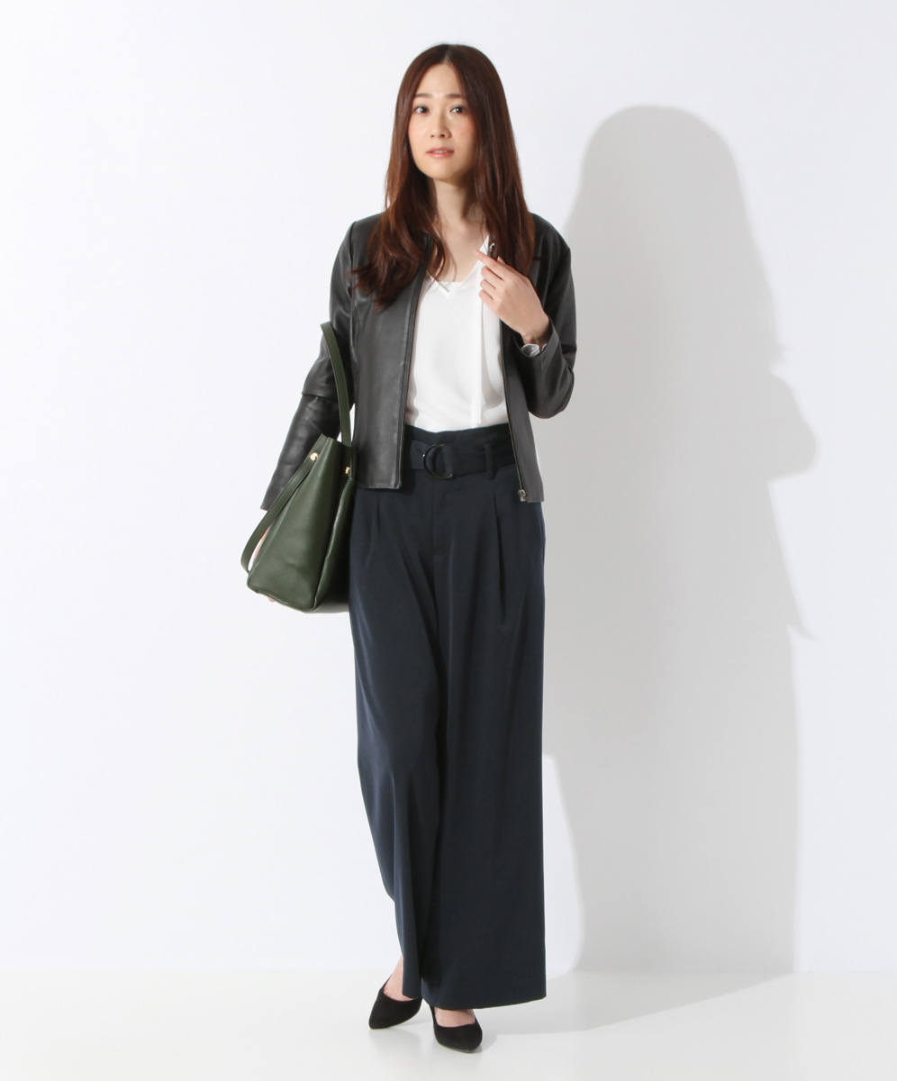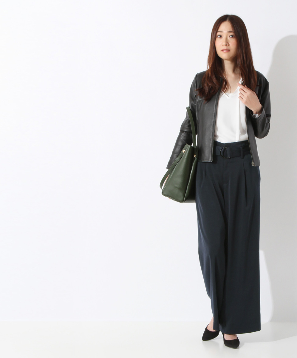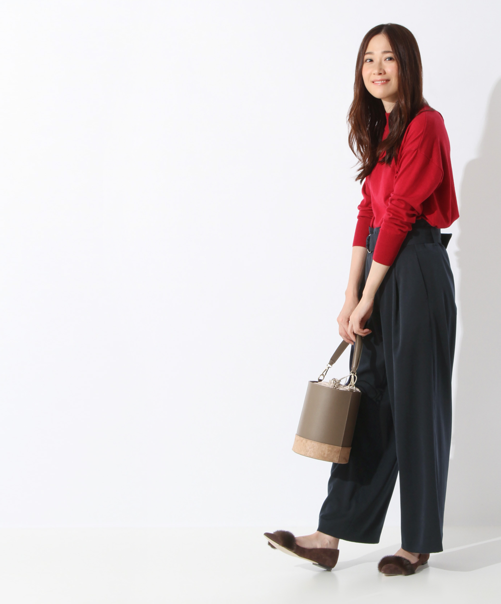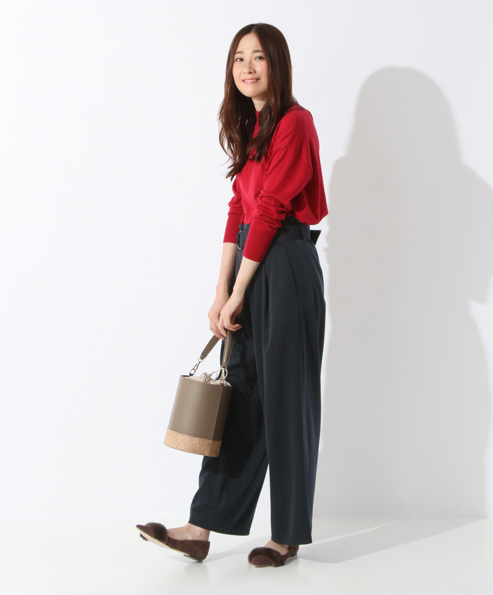《WEB限定アイテム》付属で付いているウエストベルトが特徴のワイドパンツ。スエード調の素材が今年らしく、大人カラーなネイビーとダークグリーンの展開にしているため、華やかでありながら合わせやすく仕上げています。