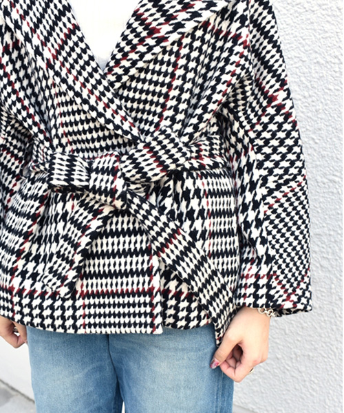 のショートコートがポイント。 付属ベルトでウエストマーク